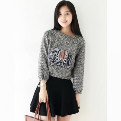 G2308-2014秋新款韩版女混色可爱小象贴布插肩长袖套头卫衣 0825