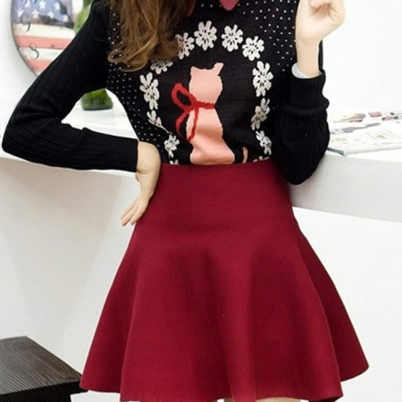 百搭款,搭配不同的打底裤超赞,非常推荐的一款裙子哦!裙型非常好的哦,整个裙子是一片式的双面针织!高腰的设计非常舒服! 腰细的亲直接做高腰裙穿很好看哦!