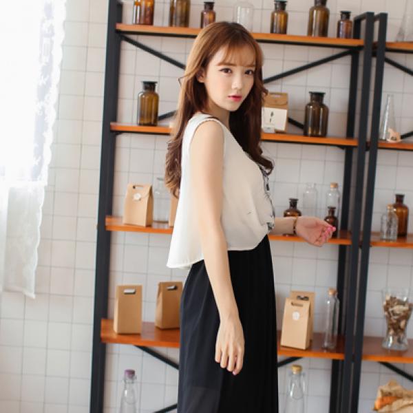 新款韩版印花无袖雪纺连衣裙长裙